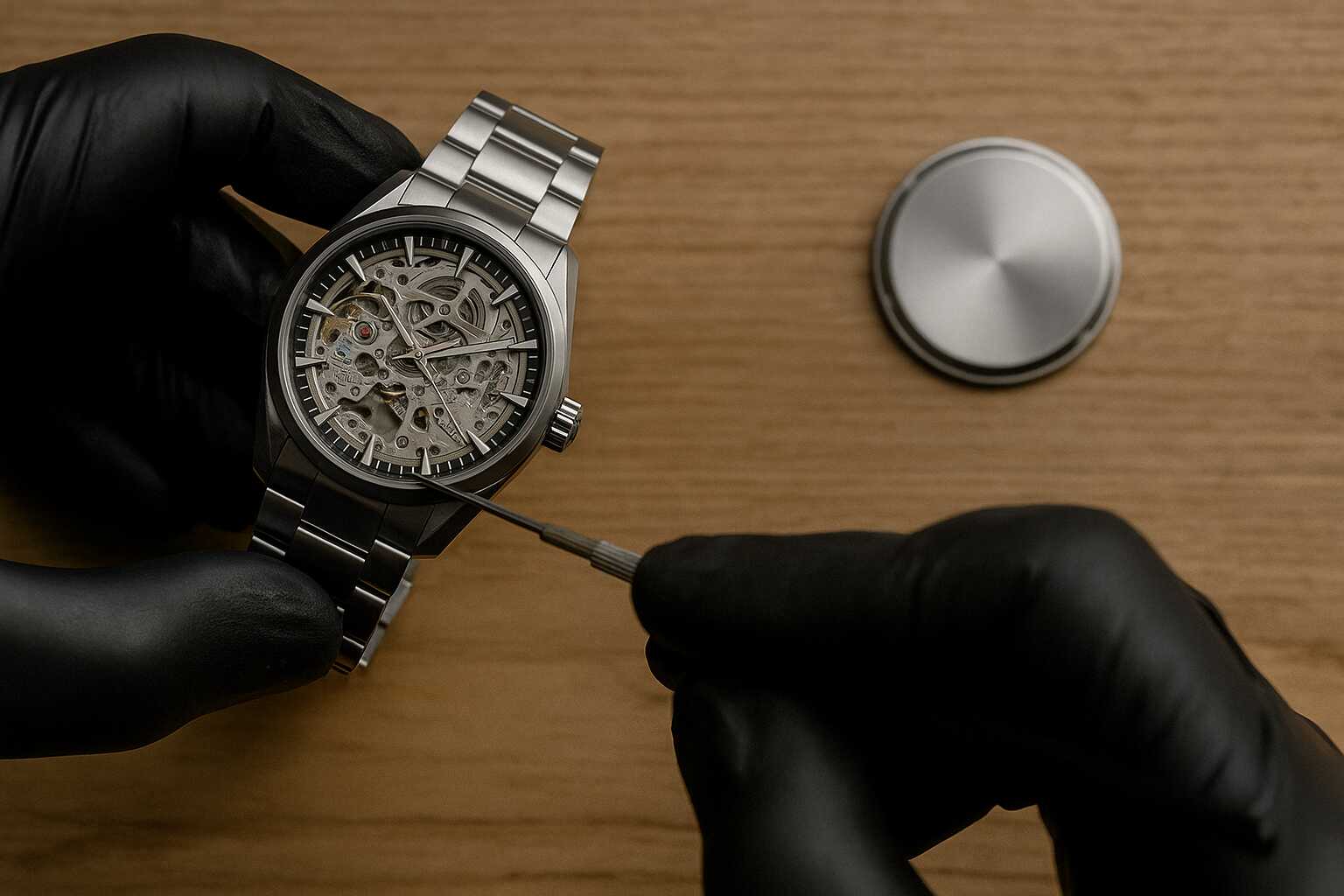 The Complete Service is a full technical and aesthetical overhaul of your timepiece. After disassembling the case and the movement, our specialists check and clean every part and refurbish or replace it as needed.